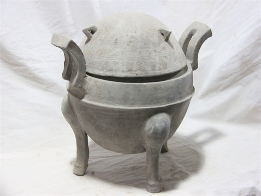 灰陶双耳三足鼎